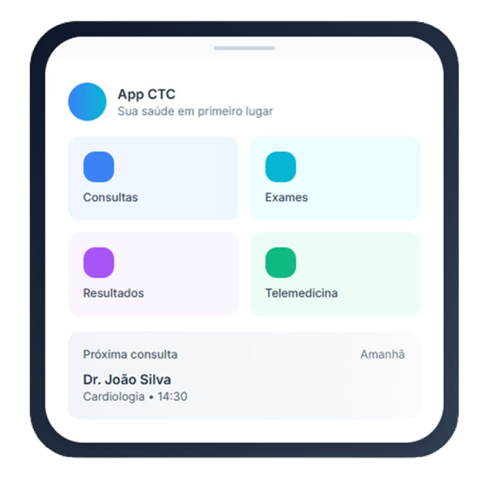 O App CTC conecta seus pacientes aos principais serviços da sua instituição de saúde!