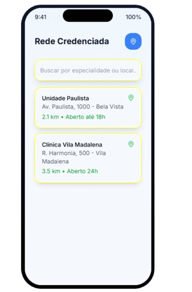 Localização rápida de unidades, laboratórios e hospitais credenciados. Informações completas sobre horários e especialidades.